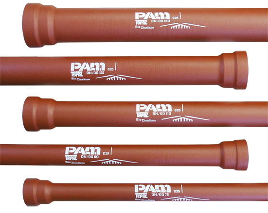 The TOPAZ ductile iron pipeline system is dedicated to sewage discharge for small diameters of DN/OD 75 to 160 mm and is suitable ofr most soils.